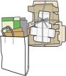 新聞、ダンボール、雑がみ(チラシ・カタログ、雑誌、紙箱、封筒、包装紙、紙袋など) |